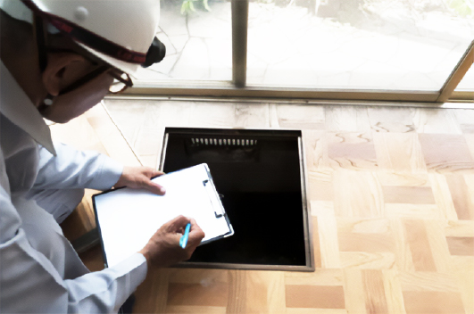床下診断の結果をもとに、⼯事が必要な 場合のみ⾒積りをお出しします。